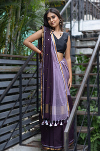 Younme Sarees Malmal Cotton Zari Stripes Weaving Saree