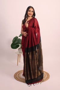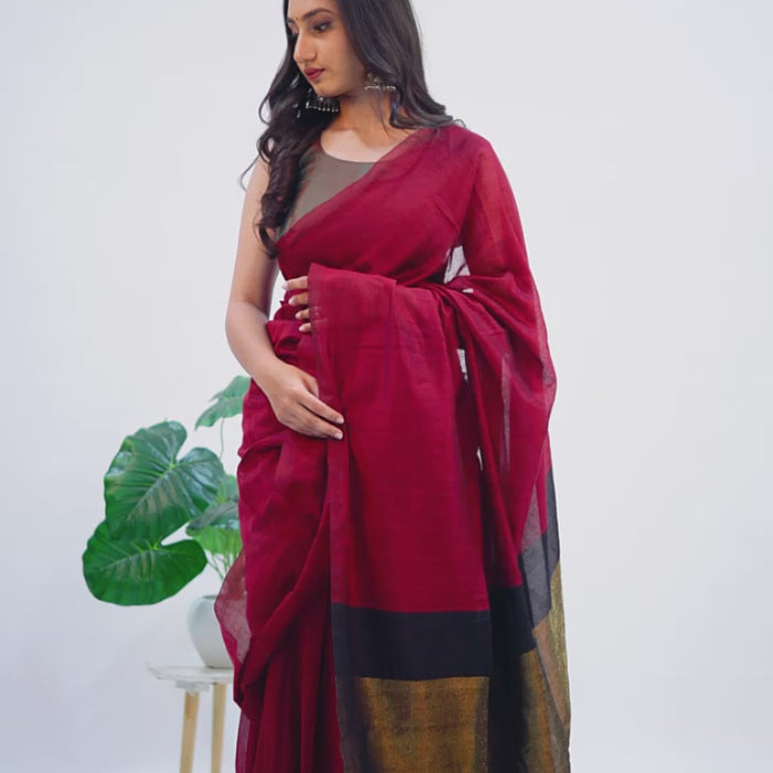 Quickshop Product Details: Fabric: Pure Linen Saree Length: 6.3 meters with blouse piece...